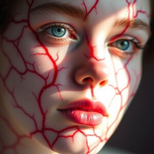 Manchas vermelhas no rosto, especialmente ao redor do nariz, bochechas