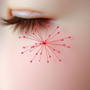 Pequenas linhas vermelhas que surgem no rosto, especialmente nas bochechas,