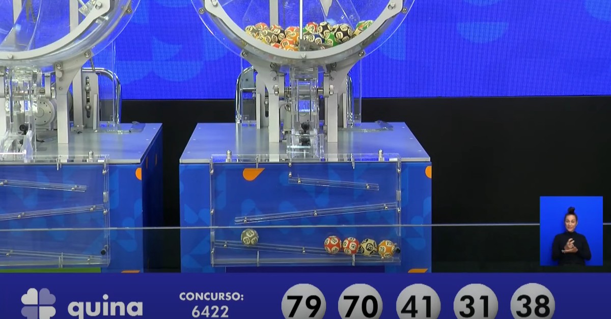 Sorteio ocorreu nesta segunda-feira (22). Prêmio é de R$ 47.985.306,91, o maior da história da loteria. Confira os números sorteados: 31 – 38 – 41 – 70 – 79. Veja abaixo os números do sorteio do concurso 6422 da Quina realizado nesta segunda-feira (22):