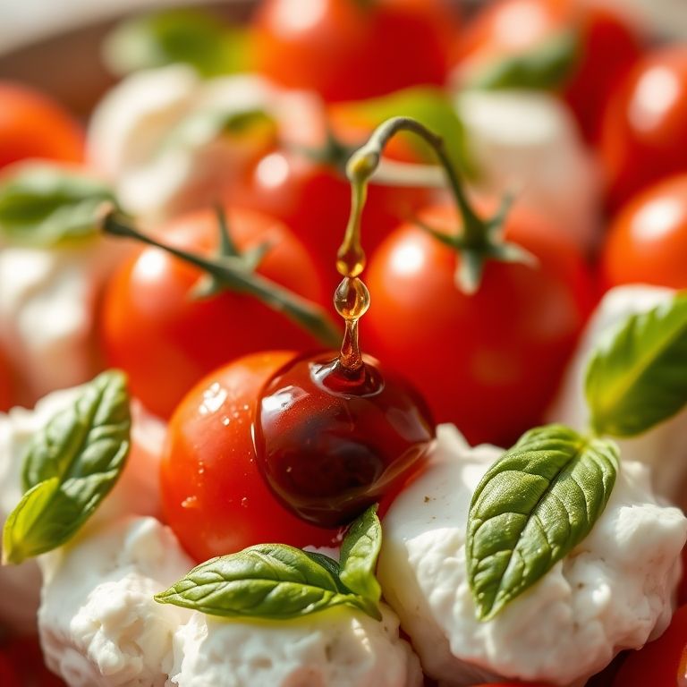 Cada ingrediente da Caprese desempenha um papel fundamental na experiência gustativa. O tomate, suculento e maduro, oferece um toque de acidez e frescor. A mussarela, macia e cremosa, complementa o tomate com sua suavidade e textura aveludada. O manjericão, com seu aroma inconfundível, adiciona um toque herbáceo e picante que eleva o sabor da salada. E o azeite balsâmico, com sua doçura e acidez equilibradas, finaliza a Caprese com um toque de sofisticação e elegância.